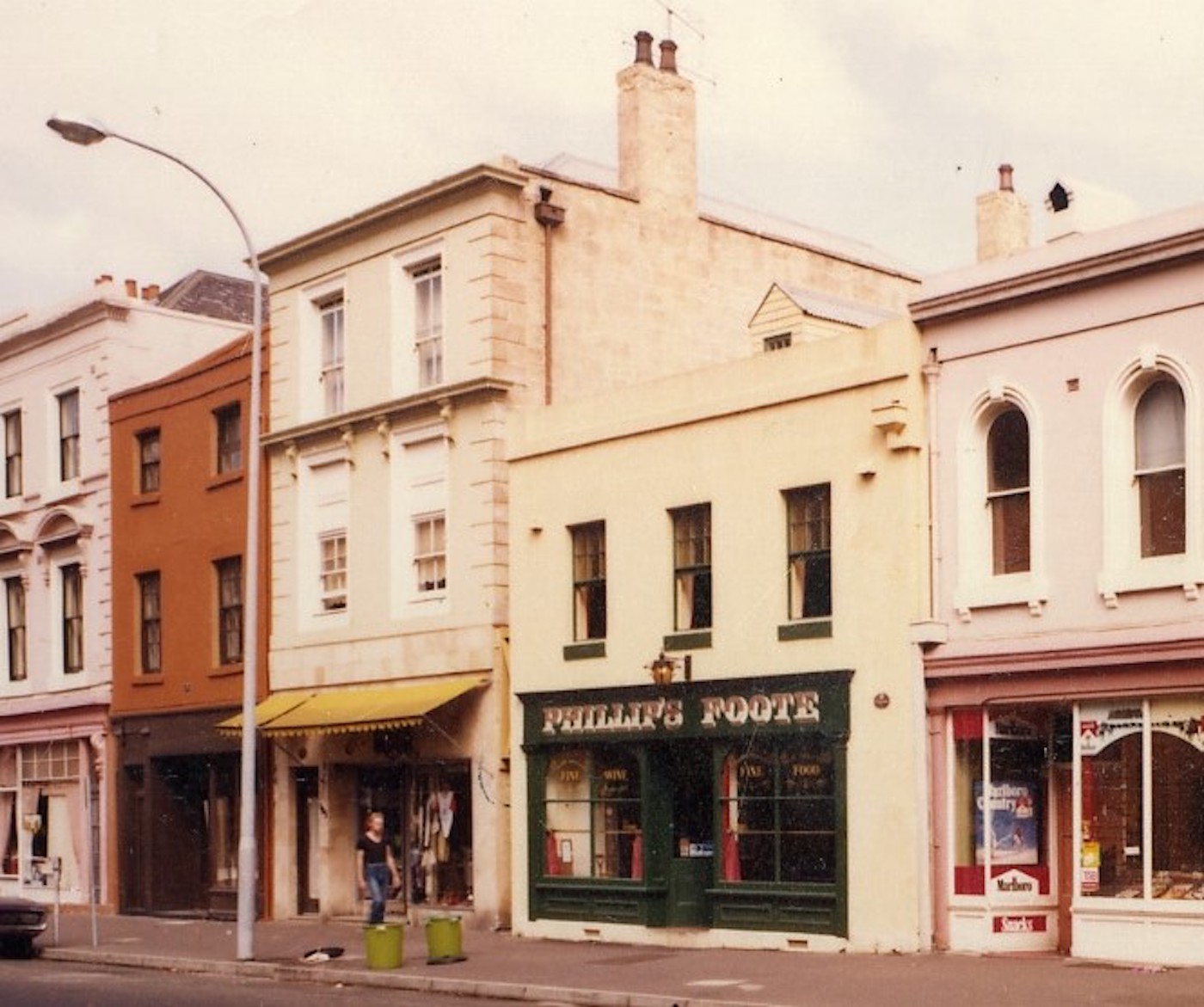 Painted signage, uncovered in the 1990s and visible on the facade, are evidence of 19th century uses; "Model Boarding House", "Colonial Wine Depot", "Meals 6D", all painted over by 1880.
