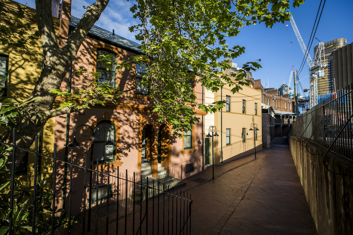 No. 38-40 Gloucester Street is a two storey late Victorian Italianate style stuccoed terrace with basement. Its most distinctive features are the very tall decorated arched doorway openings and the arched windows with plain keystones. All the windows at ground level are double hung with one pane in the upper window, two in the lower. The windows of the upper storey are double hung with four panes.