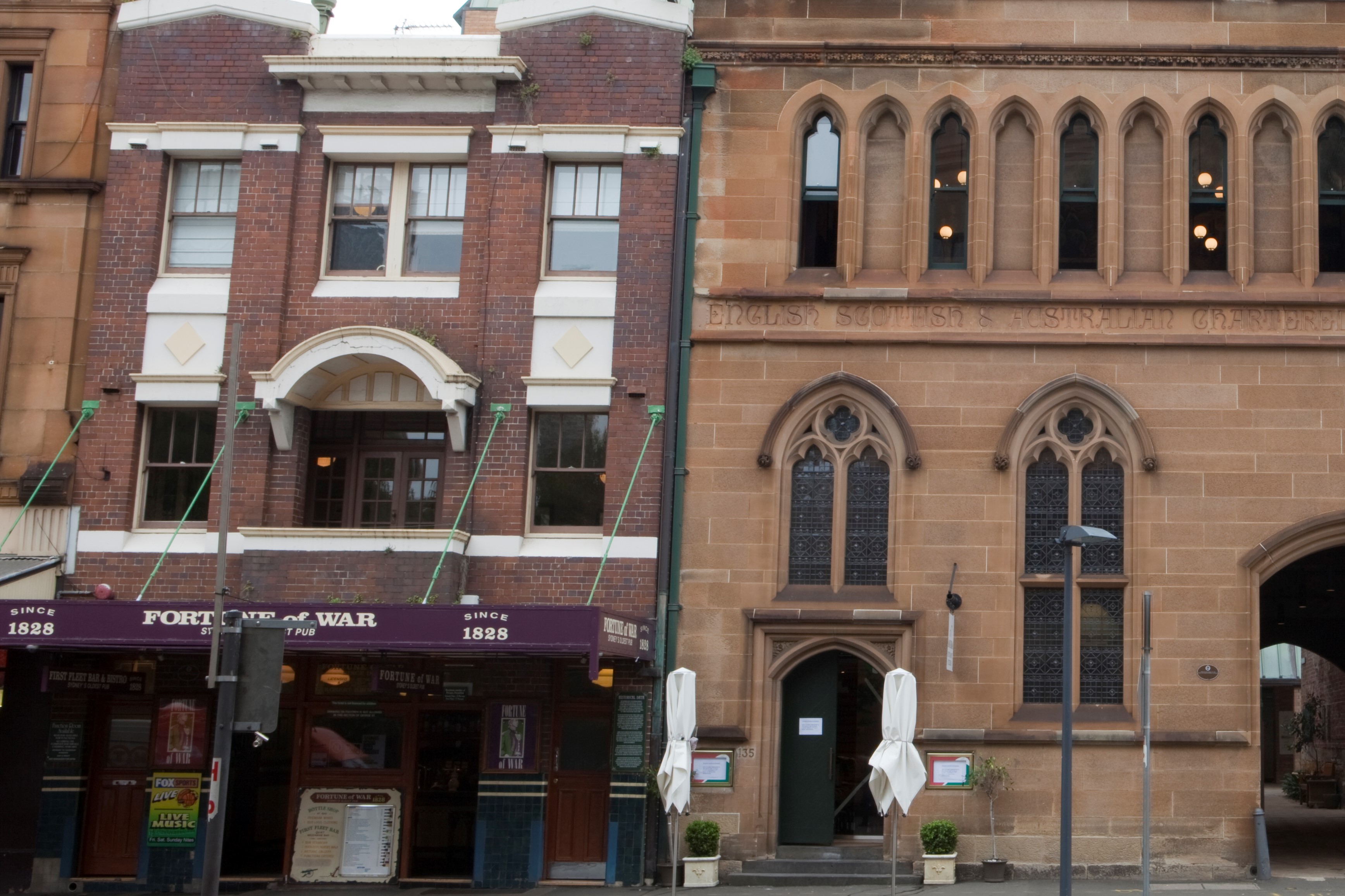 The present Fortune of War Hotel, and to a lesser extent the Russell Hotel, are associated with Tooth & Co, a brewing company that was established in 1835 and ran until 1983. The company took an increasing interest in the construction and operation of hotels from the 1920s.