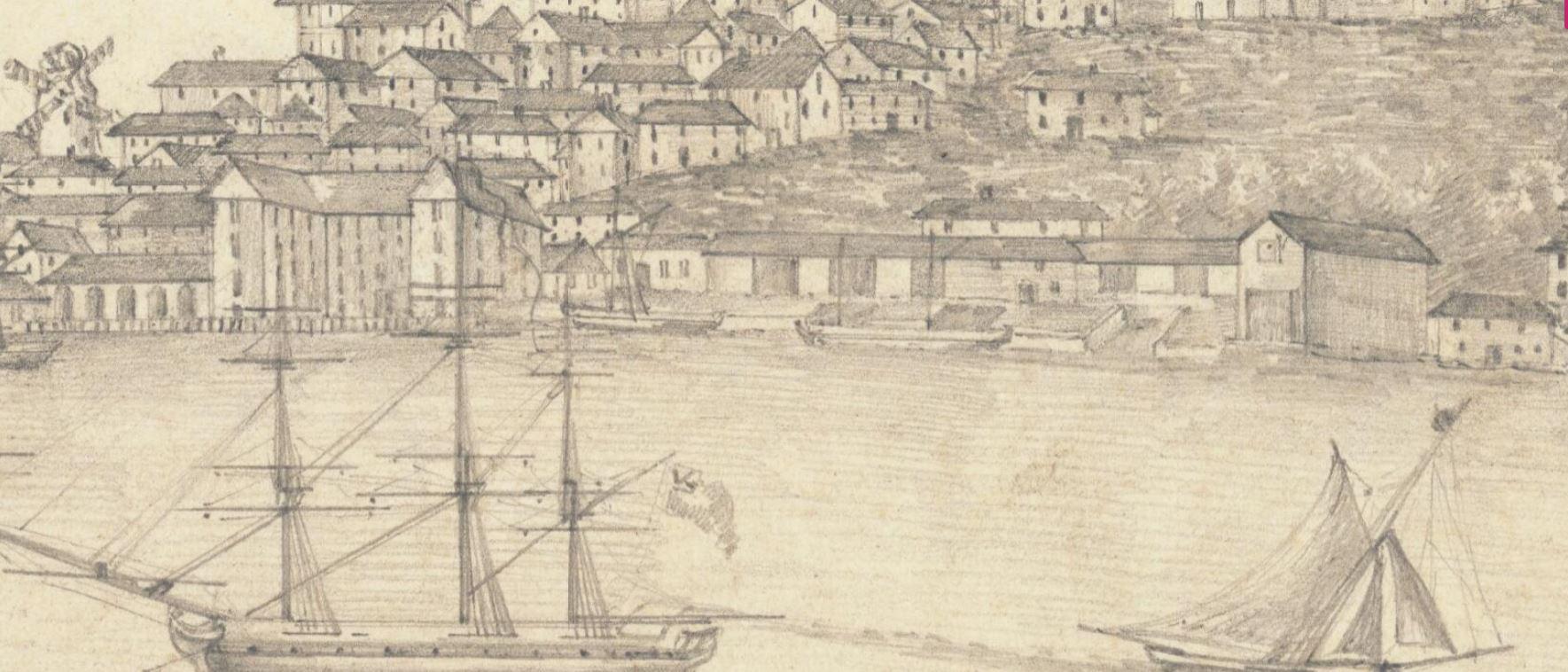 In 1800, a ‘commodious stone house near the naval yard’ was built as a residence for the Master of the Dockyard, later known as the Naval Officer’s House. The house featured a mansard roof with dormer windows and figures prominently in views of Sydney Cove prior to its demolition in the 1830s.